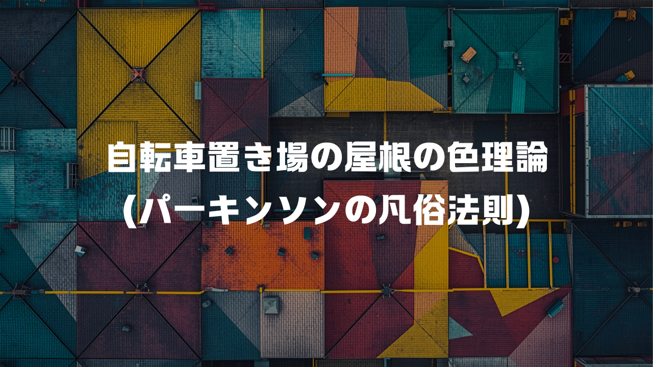 自転車置き場の屋根の色理論(パーキンソンの凡俗法則)とは、「どうでもいいこと(誰にでも分かるような簡単なこと)ほど議論が白熱してしまう」ことです。