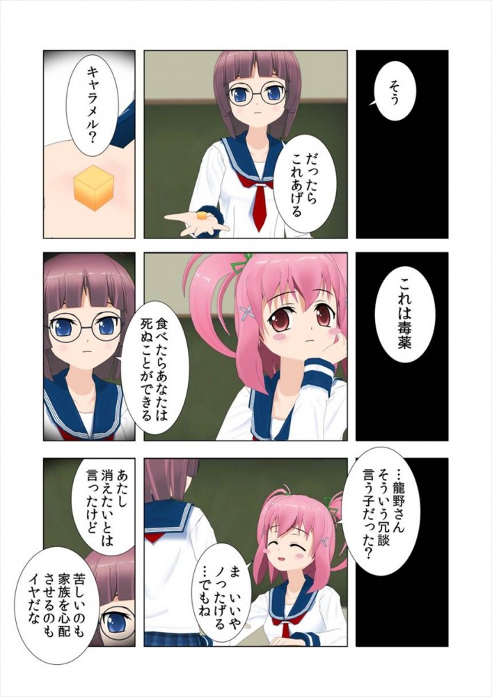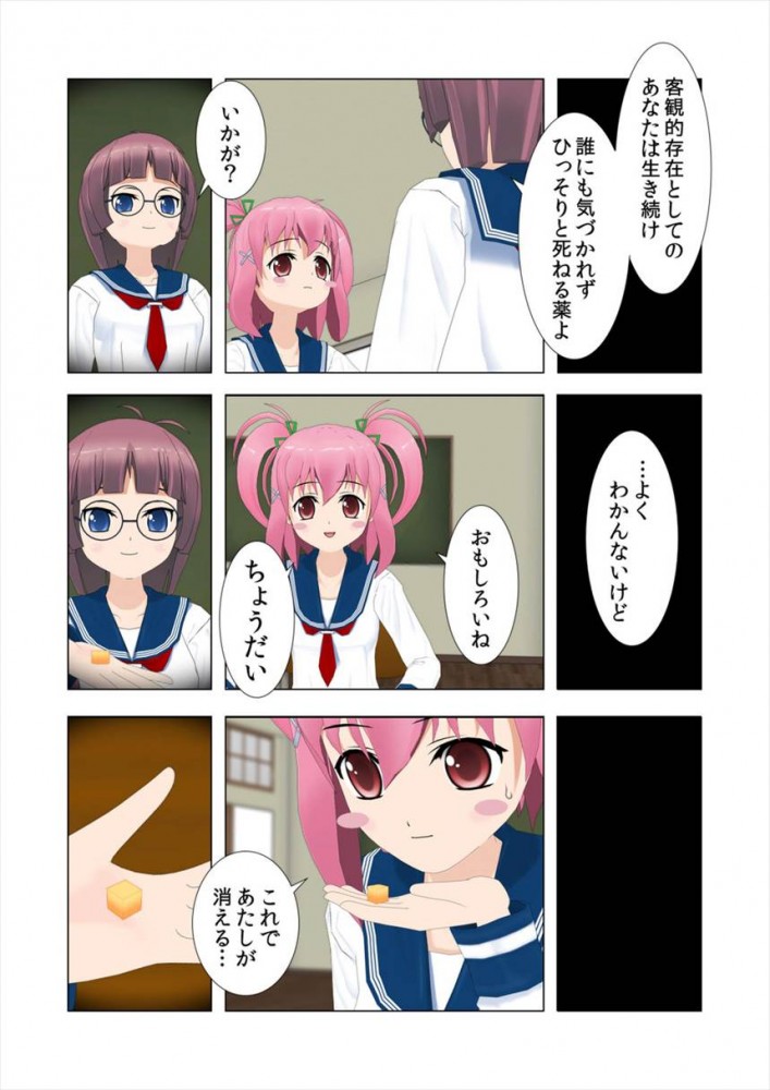 ピンクの子はキャラメルを食べ哲学的ゾンビになったため、キャラメルを食べた後は常に真っ黒