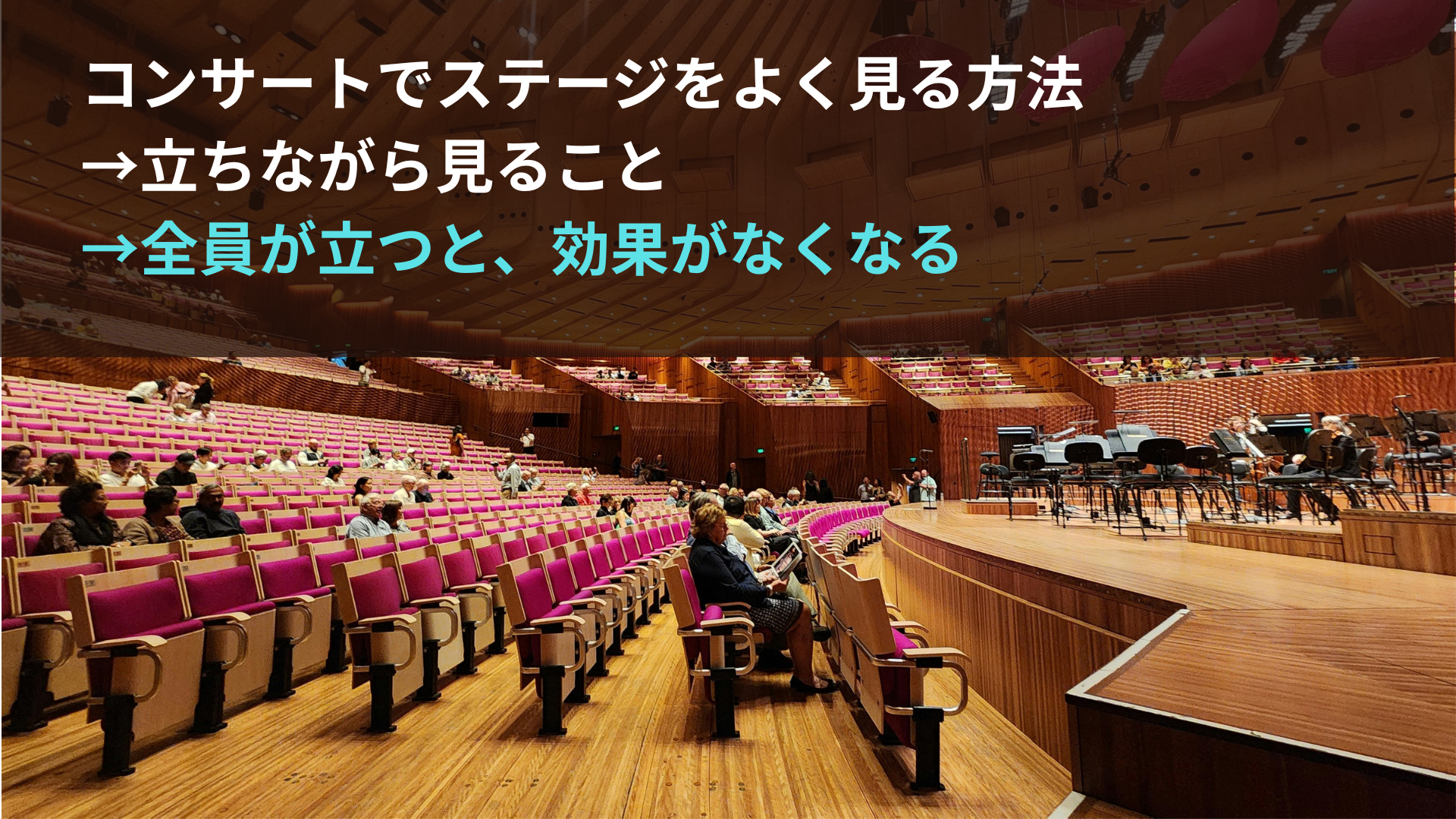 コンサートでステージをよく見る方法は、立ちながら鑑賞することですが、全員が立つと効果が薄れますよね。