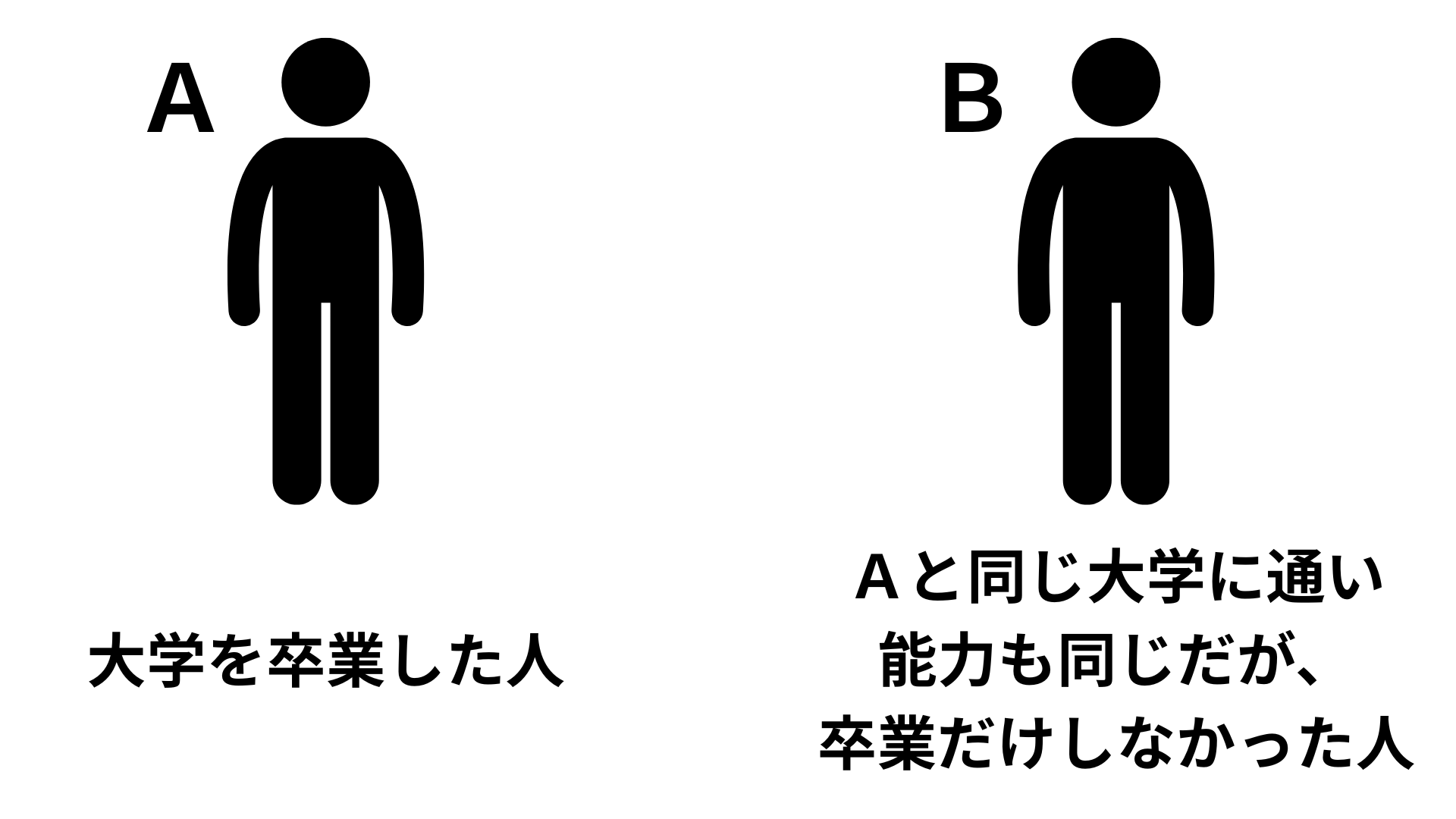なぜなら、「Bは大学を敢えて卒業しないような選択を取る人である」という負のシグナリングがあるからです。